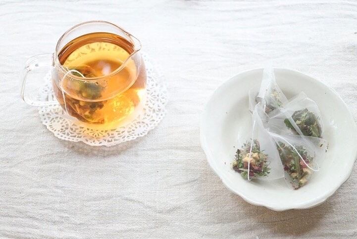 ラズベリーリーフをベースにドライアップル、ローズヒップ、ルイボス等をブレンドしました。