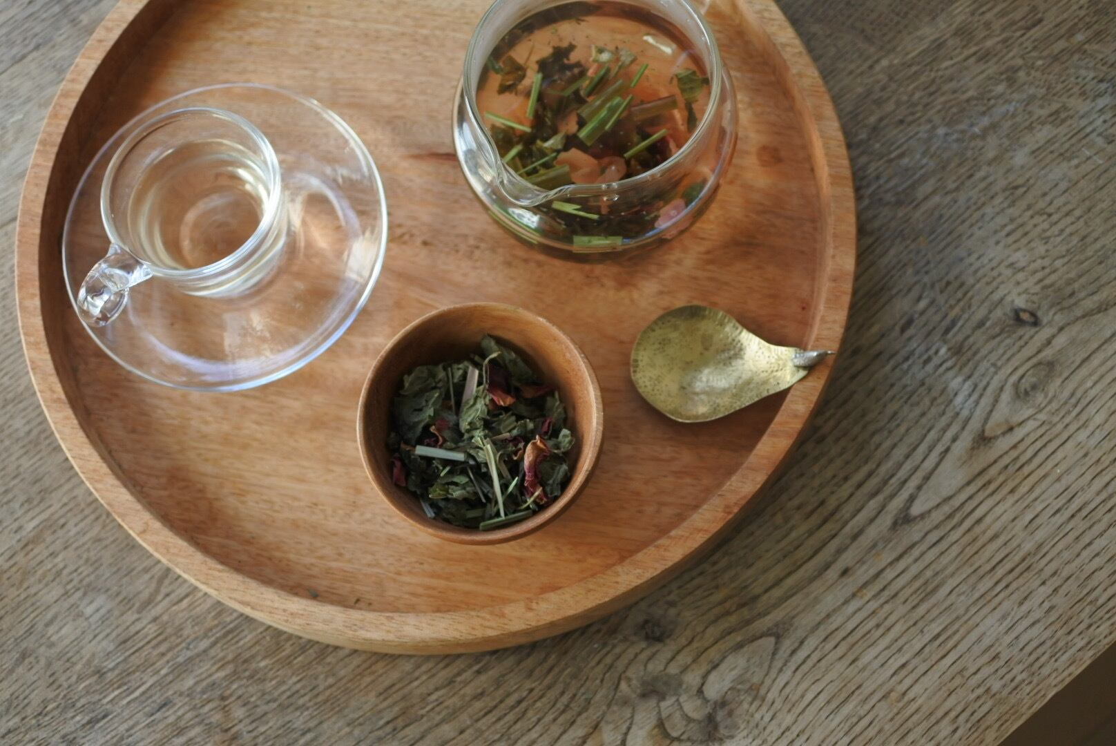 ジャスミンのお花の香りとハイビスカスの酸味、レモン系のハーブでスッキリ爽やかな味わいです。お料理などにも合わせてお楽しみください/原材料:ハイビスカス 、ジャスミン茶、レモングラス、メリッサ、ペパーミント、ローズヒップ、ローズ